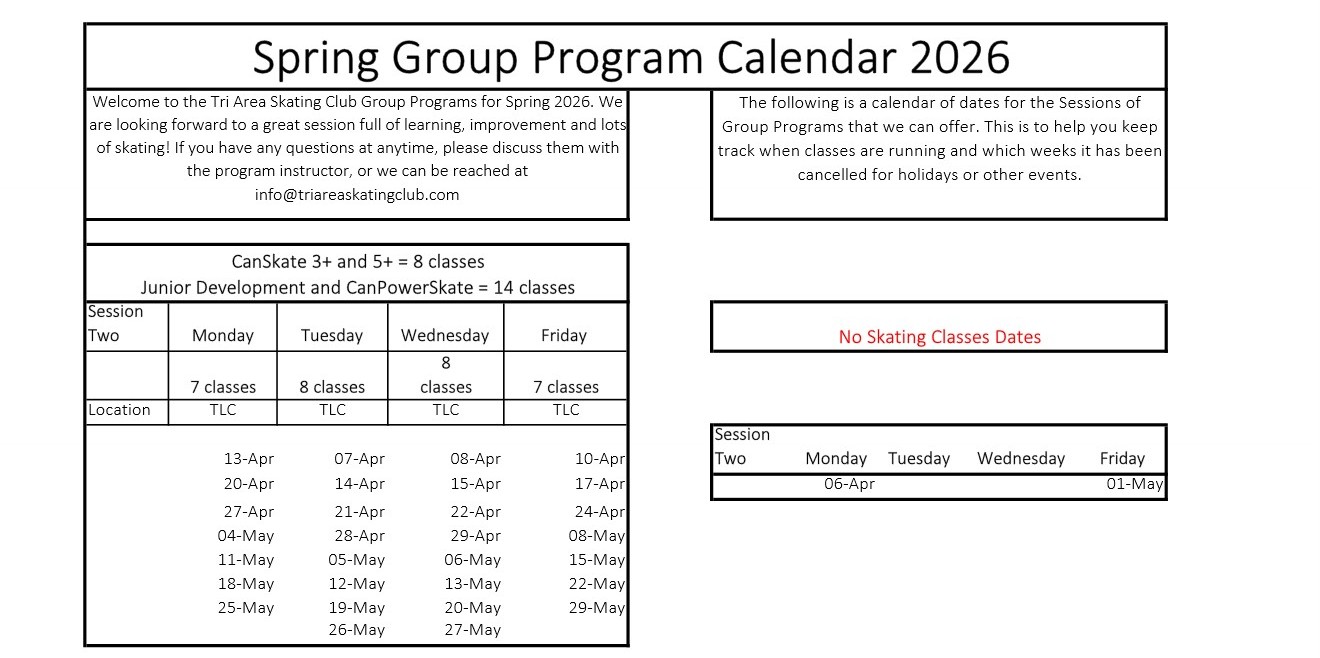 Send E-Transfer payments to info@triareaskatingclub.com